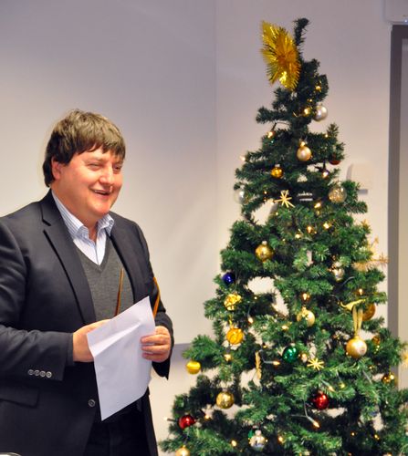 Die Weihnachtsfeier am Institut für Biomaterialien fand am 19. Dezember 2016 in unserem neuen Gebäude in West-Erlangen statt. Professor Boccaccini fasste in seiner Rede die Erfolge des Jahres 2016 zusammen. Einige dieser Erfolge benannte er mit Zahlen, z.B. erlangten 6 Doktoranden ihren Dr.-Ing. Abschluss. 47 Master, Bachelor und Projektstudenten realisierten ihre Forschungsprojekte oder Arbeiten an unserem Institut. Außerdem haben 2016 5 neue Doktoranden an unserem Insitut begonnen und wir hatten 34 internationale Besucher, einschließlich akademischer Besucher, undergraduates und graduate Studenten, z.B. Erasmus Austauschsstudenten. Weiterhin waren wir sehr erfolgreich in der Erlangung von Preisen, 6 insgesamt, einschließlich zweier Preise für Doktoranden (Lukas Gritsch und Yuyun Yang). Wir haben mehr als 25 Präsentationen auf Konferenzen weltweit gegeben, viele davon als Keynote oder als Gastredner. Unsere Anzahl an Veröffentlichungen war ausgezeichnet, unser Institut publizierte 68 Artikel in Wissenschaftsjournalen. Schlussendlich betonte Prof. Boccaccini weitere Highlights des Jahres, z.B. die Einweihung unseres neuen Gebäudes in der Ulrich-Schalk-Straße im Juli und das von uns sehr erfolgreiche, organisierte internationale Symposium im November. Frohe Weihnachten und ein gutes neues Jahr!