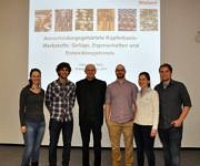 Auf dem Bild sind die aktuellen Mitglieder der Jung-DGM Erlangen-Nürnberg (v.l.n.r.: Svenja Heise (Biomaterialien), Nicklas Volz (Allgemeine Werkstoffeigenschaften), Malte Lenz (Mikro- und Nanostrukturforschung), Lena Vogt (Biomaterialien), Patrick Herre (Feststoff- und Grenzflächenverfahrenstechnik)) zusammen mit Dr. Kuhn und einem Teil des Publikums zu sehen.