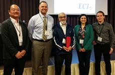 Die 5. internationale Konferenz für syntaktische Schäume und Komposit-Schäume fand in Siracusa, Italien, vom 26. bis 31. März 2017 statt. Prof. Boccaccini war ein Mitvorsitzender dieser Konferenz, welche von Engineering Conferences International (ECI) unterstützt wurde. Dr. Liliana Liverani und Lukas Gritsch (Doktorand) nahmen an der Konferenz teil und präsentierten unser Institut. Dr. Liverani referierte zu „Keynote: Composite foams as tissue scaffolds: past, present and future“ und „Proteins as coating materials on bioactive glass-based composite foams“. Lukas Gritsch präsentierte ein Poster zum Thema: „Antimicrobial chitosan foams as tissue engineering scaffolds“. Auf dem Bild sind zu sehen Dr. Manabu Fukushima (Japan) (Mitvorsitzender), Dr. Gary M. Gladysz (USA) (Vorsitzender), Prof. Krish Chawla (USA) (Mitvorsitzender), Dr. Liliana Liverani (FAU) und Lukas Gritsch (FAU). (Zum Vergrößern, Bild anklicken)