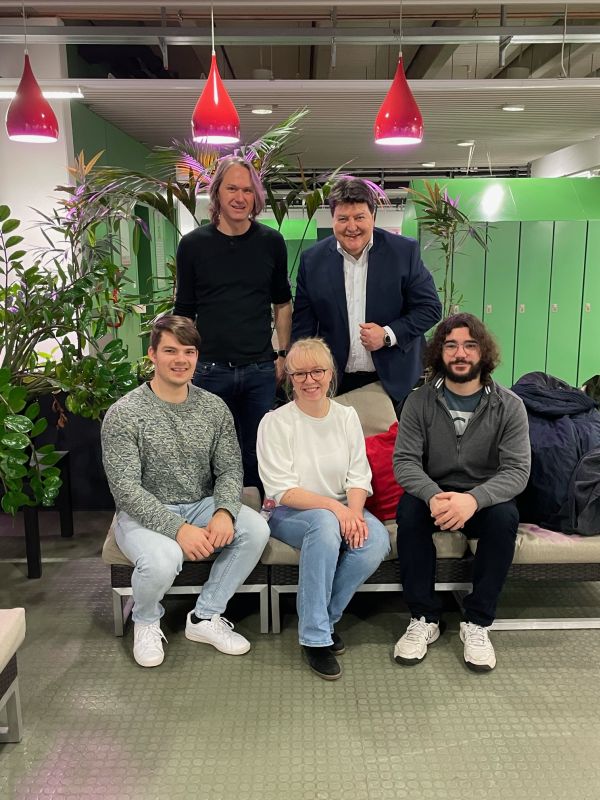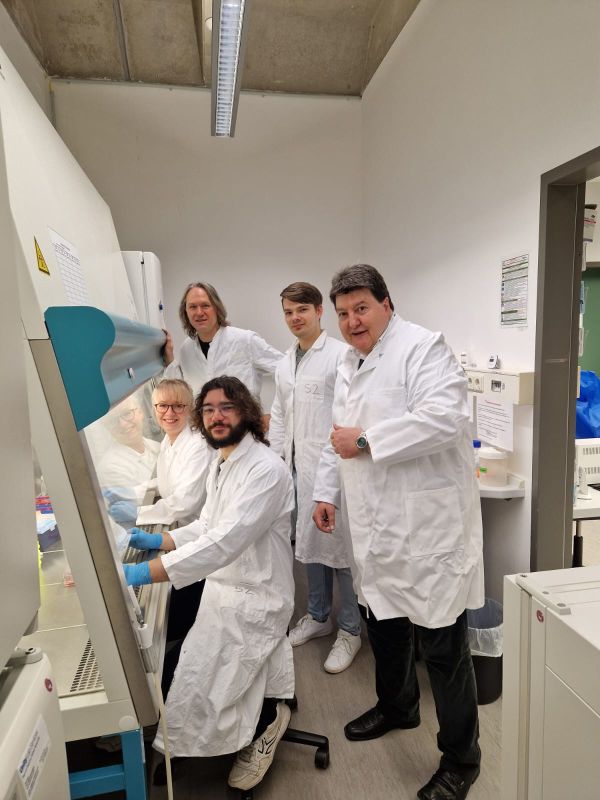 Im Rahmen des von der DFG geförderten Sonderforschungsbereichs CRC/SBF 1540 „Exploring Brain Mechanics (EBM)“ haben wir eine sehr effektive Zusammenarbeit mit Dr. Renato Frischknecht, Fachbereich Biologie, Lehrstuhl für Tierphysiologie (Prof. Dr. Brandstätter) aufgebaut. Unsere Zusammenarbeit mit dem Team von Dr. Frischknecht umfasst die Untersuchung des Verhaltens von primären Neuronen, die in Hydrogelen auf Hyaluronsäurebasis verkapselt sind, die im Projekt X03 entwickelt werden. Auf den Bildern: Sonja Kuth, Markus Lorke (Promovierende, Biomaterialien), Bartomeu Perelló Amorós (Doktorand, Biologie), Dr. Frischknecht und Prof. Boccaccini beim Besuch im Labor von Dr. Frischknecht.