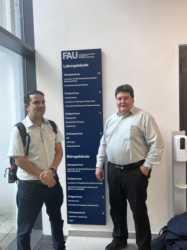 Am 25. Juli 2023 besuchte uns Prof. Dachamir Hotza vom Fachbereich Chemieingenieurwesen der Bundesuniversität Santa Catarina (UFSC), Koordinator der brasilianischen Seite unseres Kooperationsprojekts „Ph.D. with Double Degree UFSC-FAU“, das von der Forschungsstiftung von Santa Catarina (FAPESC) mit Unterstützung des Büros für Promotionsangelegenheiten finanziert wird, und dem Lehrstuhl für Biomaterialien der FAU unter der Koordination von Prof. Aldo Boccaccini. An der UFSC wird das Projekt vom Graduate Program in Chemical Engineering (PosENQ) geleitet, unter Beteiligung des Graduate Program in Materials Science and Engineering (PGMAT). Derzeit arbeiten wir auch mit Prof. Hotza und einem Team brasilianischer Forschenden im Rahmen des bilateralen CAPES/DAAD PROBRAL-Projekts mit dem Titel „Advanced Manufacturing of Multifunctional Scaffolds: Synthese, Verarbeitung und biologische Bewertung“.