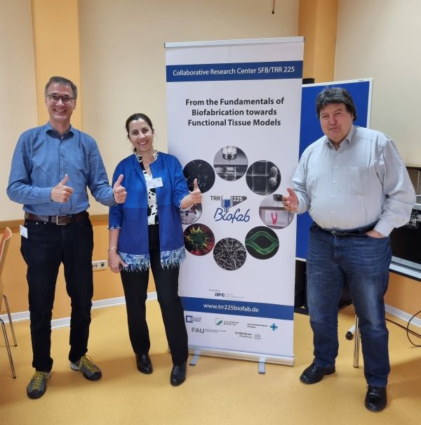 Die erste Herbstklausur 2023 des Sonderforschungsbereichs TRR/SFB 225 „Von den Grundlagen der Biofabrikation zu funktionalen Gewebemodellen“, fand vom 4. bis 6. Oktober 2023 in Lichtenfels statt. Hsuan-Heng Lu, Jonas Roeder (Promovierende), Dr. Rainer Detsch und Prof. Aldo R. Boccaccini (im Bild) nahmen an der Klausur teil. Das TRR 225 CRC wird von der Deutschen Forschungsgemeinschaft (DFG) gefördert und befindet sich derzeit in der zweiten Förderperiode. Das Zentrum bringt Forschende der drei nordbayerischen Universitäten (Universität Würzburg, Universität Bayreuth und Universität Erlangen-Nürnberg) zusammen, um die Grundlagen der Biofabrikation und ihre Anwendungen zur Herstellung funktioneller menschlicher Gewebemodelle zu untersuchen. Jonas Roeder und Hsuan-Heng Lu stellten in Vorträgen die Ergebnisse ihrer Projekte vor. Prof. Boccaccini ist der Sprecher im TRR 225 für Erlangen (Universität Erlangen-Nürnberg (FAU) und Universitätsklinikum Erlangen (UKER)). Prof. Boccaccini ist auch Mitglied des wissenschaftlichen Beirats von TRR225.