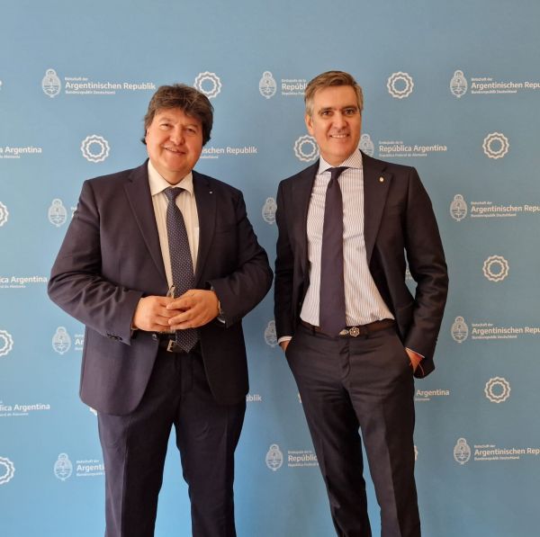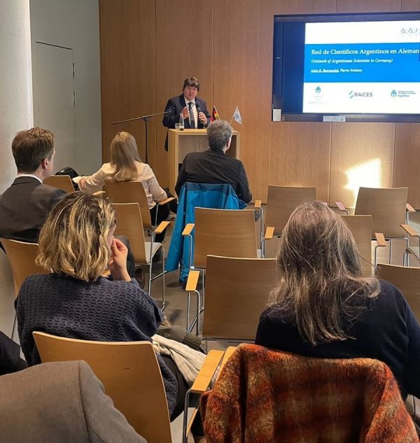 Die Botschaft von Argentinien in Deutschland organisierte den Argentinisch-Deutschen Wissenschaftstag am 7. November 2023 in Berlin im Rahmen der Berliner Wissenschaftswoche. Prof. Aldo R. Boccaccini, der wissenschaftliche Koordinator des Netzwerks argentinischer Wissenschaftler*innen in Deutschland, war als Redner eingeladen. In seinem Vortrag wies Prof. Boccaccini auf die Möglichkeiten zum Ausbau der Forschungskooperationen und des akademischen Austauschs zwischen Deutschland und Argentinien hin. Im Bild Prof. Boccaccini mit dem Botschafter von Argentinien in Deutschland, Herrn Fernando Brun.