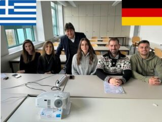 In der Woche vom 4. bis 8.12.2023 besuchten Ioannis Tsamesidis (Post-Doc), Evangelia Balla (Doktorandin) und Nicolaos Bikiaris (Doktorand) von der Aristoteles-Universität Thessaloniki in Griechenland den Lehrstuhl für Biomaterialien im Rahmen des DAAD-Projekts (griechisch-deutsche Zusammenarbeit, IKYDA). Prof. Aldo R. Boccaccini, Frau Zoya Hadzhieva und Frau Faina Bider (Doktorandinnen) empfingen die griechischen Gäste, besprachen die spezifischen Aufgaben des Projekts und planten zukünftige experimentelle Arbeiten. Während des Aufenthalts arbeiteten das griechische und das deutsche Team an der Bewertung der Zytokompatibilität von Chitosan-basierten Verbundgerüsten für Tissue-Engineering-Anwendungen. Die griechischen Gäste nahmen an den organisierten Laborführungen am Lehrstuhl teil und führten morphologische Analysen von organisch-anorganischen Verbundwerkstoffen durch.