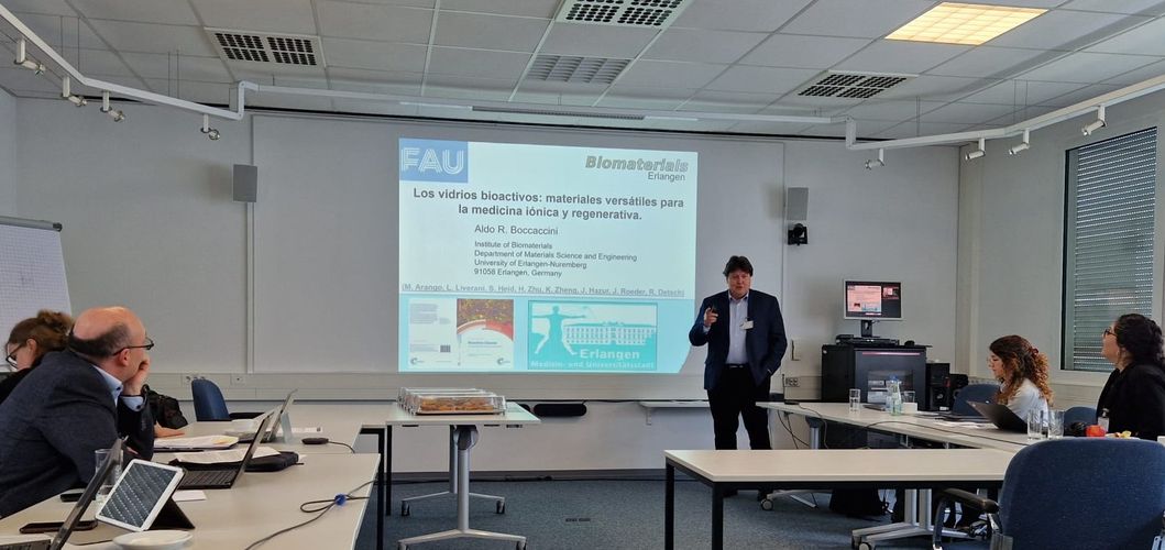 Die Idee hinter der Organisation dieses Symposiums bestand darin, in Deutschland ansässige argentinische Materialwissenschaftler und Kollegen in Argentinien zusammenzubringen, um Möglichkeiten zum Ausbau deutsch-argentinischer Forschungskooperationen in den Materialwissenschaften und -techniken zu diskutieren. Prof. Boccaccini, emeritierter wissenschaftlicher Koordinator des RCCA, hielt den Vortrag: „Bioaktive Gläser: vielseitige Materialien für die ionische und regenerative Medizin“ (auf Spanisch).