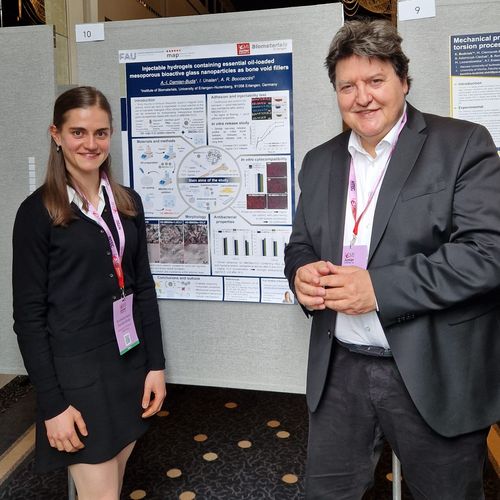 Andrada Damian-Buda, Masterstudentin, die an unserem Institut ihre Abschlussarbeit schreibt, nahm an der Konferenz teil und präsentierte das Poster: „Injectable hydrogels containing essential oil-loaded mesoporous bioactive glass nanoparticles as bone void fillers“.