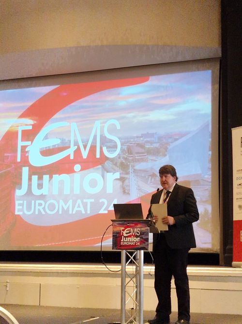Als Präsident der Federation of European Materials Societies (FEMS) nahm Prof. Aldo R. Boccaccini an der FEMS Junior EUROMAT-Konferenz teil, die vom 15. bis 18. Juli 2024 in Manchester in Großbritannien stattfand, organisiert vom Institut für Materialien, Mineralien und Bergbau (IOM3).