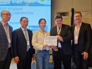 Frau Zhiyan Xu, die ihre Doktorarbeit an unserem Lehrstuhl unter der Leitung von Prof. Aldo R. Boccaccini durchführt, hat den Preis für die beste studentische Posterpräsentation (Kategorie: Gemeinsame Forschung zwischen China und der EU) auf dem 8th China-Europe Symposium on Biomaterials in Regenerative Medicine gewonnen, das vom 15. bis 18. September 2024 in Nürnberg, Deutschland, stattfand. Zhiyan präsentierte das Poster mit dem Titel: „Manganese chelated polydopamine/bioactive glass composite coating on PEEK surface for bone regeneration“, das die Ergebnisse unserer Zusammenarbeit mit Dr. Baiyan Sui vom Department of Dental Materials, Shanghai Biomaterials Research & Testing Center; Shanghai Ninth People’s Hospital, Shanghai Jiao Tong University School of Medicine; College of Stomatology, Shanghai Jiao Tong University; National Center for Stomatology; National Clinical Research Center for Oral Diseases; Shanghai Key Laboratory of Stomatology, Shanghai, China, zeigt. Gut gemacht und herzlichen Glückwunsch!