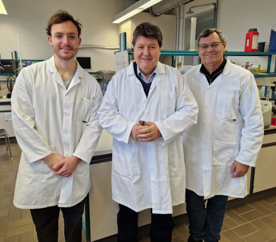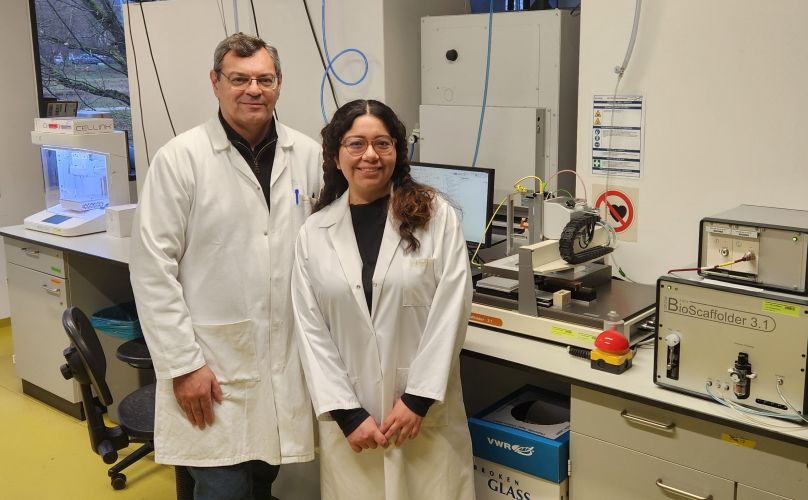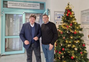 Vom 9. bis 13. Dezember 2024 erhielten wir den Besuch von Prof. Gustavo Abraham, Leiter der Abteilung für biomedizinische Polymere am Nationalen Institut für Materialforschung (INTEMA), Nationale Universität Mar del Plata (UNMdP), Argentinien. Wir haben eine fruchtbare Zusammenarbeit mit Prof. Abraham im Rahmen des IDEAR-Programms aufgebaut, das vom Deutsch-Argentinischen Hochschulzentrum (CUAA-DAHZ) finanziert wird. Das Programm läuft bereits im 8. Jahr und beinhaltet den Austausch von Masterstudierenden und leitenden Forschenden zwischen der UNMdP und unserem Fachbereich. Prof. Abraham präsentierte das Seminar „Innovative scaffolding for Tissue Engineering Through Electrospinning“. Außerdem hielt er eine Vorlesung für unsere Masterstudierenden zum Thema „Electrospinning for Implants: An Advanced Fabrication Technique“. Prof. Abraham besuchte unsere Labore und führte Gespräche mit den derzeitigen Studierenden der UNMdP, die unseren Lehrstuhl im Rahmen des I.DEAR-Programms besuchen, Camila Cortez und Agustin Agostini (im Bild).