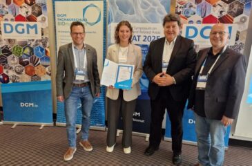 Herzlichen Glückwunsch an unsere Doktorandin Hannah Kissel, die den Preis für das beste Poster auf dem 8th European Symposium on Biomaterials and Related Areas (BioMAT 2025) erhalten hat, das am 14. und 15. Mai 2025 in Weimar (Deutschland) stattfand und unter der Schirmherrschaft der Deutschen Gesellschaft für Materialkunde (DGM) organisiert wurde. Sie präsentierte sehr interessante Ergebnisse ihres Projekts, das von Prof. Aldo R. Boccaccini betreut wird und die Entwicklung von Lithium freisetzenden mesoporösen bioaktiven Glasnanopartikeln für die Knorpelreparatur zeigt. Gut gemacht!