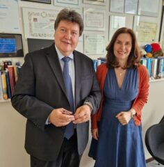 Prof. Markaki hielt den Vortrag zum Thema „Bioengineered Vascular Networks and Grafts“. Sie traf verschiedene Forscherinnen und Forscher am Lehrstuhl für Biomaterialien und diskutierte Themen für eine mögliche Zusammenarbeit, darunter neben Prof. Boccaccini auch Dr. Rainer Detsch und Prof. Iwona Cicha vom SEON des Universitätsklinikums Erlangen.