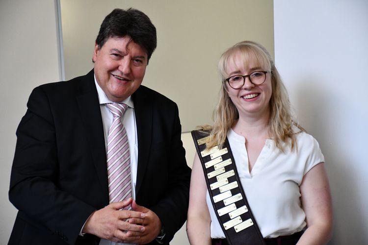 Herzlichen Glückwunsch an Sonja Kuth zur erfolgreichen Verteidigung ihrer Doktorarbeit mit dem Titel „Development of hydrogels based on oxidized hyaluronic acid for neural applications” am 26. September 2025. Sonja hat ihr Promotionsvorhaben in unserem Lehrstuhl unter der Betreuung von Prof. Aldo R. Boccaccini durchgeführt. Die Verteidigung fand in Erlangen statt. Die Mitglieder der Doktorprüfungskommission waren: Prof. Carmen Villmann (Universität Würzburg), PD Dr. Stefan Rampp (Medizinische Fakultät, FAU), Prof. Dominique de Ligny (Fachbereich Materialwissenschaft und Werkstofftechnik, FAU) (Vorsitzender) und Prof. Boccaccini. Prof. Boccaccini hob die beeindruckenden Ergebnisse hervor, die Sonja in ihrer Doktorarbeit erzielt hat. Sonja entwickelte und charakterisierte neuartige Hydrogele auf Hyaluronsäurebasis, die für mögliche neurologische Anwendungen optimiert und untersucht wurden, beispielsweise in Therapien zur Nervenregeneration, in Gehirnphantomen und als Matrizen für In-vitro-Studien in Kontakt mit Nervenzellen. Aus Sonjas Doktorarbeit sind bereits mehrere Artikel hervorgegangen (zum Beispiel Ref. [1-2]).