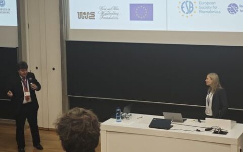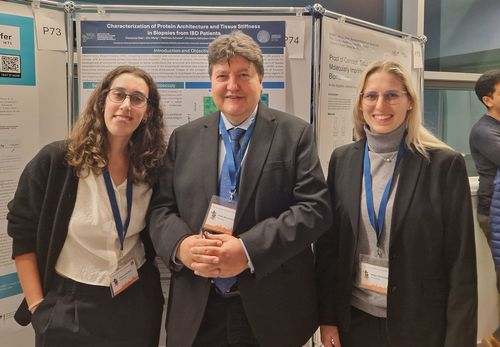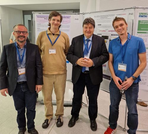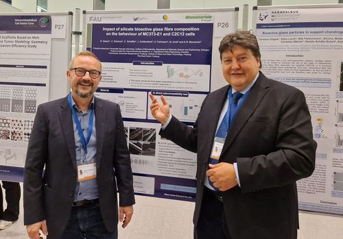Dr. Rainer Detsch und Prof. Aldo R. Boccaccini nahmen an der Jahrestagung 2025 der Deutschen Gesellschaft für Biomaterialien (DGBM) teil, die vom 9. bis 11. Oktober 2025 in Dresden stattfand. Dr. Detsch hielt einen Vortrag über Bio-Tinten für den Tintenstrahldruck im Rahmen des Sonderforschungsbereichs SFB/TRR 225 „Von den Grundlagen der Biofabrikation zu funktionellen Gewebemodellen”. Darüber hinaus wurde ein gemeinsames Poster präsentiert, das unsere Ergebnisse zur biologischen Charakterisierung von bioaktiven Glasfasern vorstellte. Prof. Boccaccini war Co-Vorsitzender der Sitzung zum Thema „Bioaktive Gläser”, in der mehrere Beiträge von Mitarbeitenden unseres Lehrstuhls vorgestellt wurden. Er leitete auch eine Plenarsitzung mit der Plenarrednerin Prof. Cecilia Persson (Schweden). Es war großartig, ehemalige Mitglieder unseres Lehrstuhls wiederzusehen, darunter Dr. Thomas Distler, Dr. Florencia Diaz, Frau Malin Schmidt und Dr. Harald Unterweger. Wir waren auch am Stand des TRR225 vertreten.