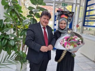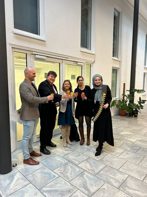 Herzlichen Glückwunsch an Emine Karakaya zur erfolgreichen Verteidigung ihrer Doktorarbeit mit dem Titel „Development of Alginate-Based Bioinks Exhibiting Promising Cell-Material Interactions for 3DBiofabrication Approachese” am 20. Oktober 2025. Emine führte ihr Doktoratsprojekt an unserem Lehrstuhl unter der Betreuung von Prof. Aldo R. Boccaccini im Rahmen des Sonderforschungsbereichs TRR 225 durch, genauer gesagt im Projekt B06 unter der Leitung von Dr. Rainer Detsch. Die Verteidigung fand persönlich in Erlangen statt. Die Mitglieder des Promotionsprüfungsausschusses waren: Prof. Sahar Salehi Müller (Universität Hohenheim), Prof. Silvia Budday (Fachbereich Maschinenbau, FAU), Prof. Peter Felfer (Fachbereich Werkstoffwissenschaft und Werkstofftechnik, FAU) (Vorsitzender) und Prof. Aldo R. Boccaccini. Prof. Boccaccini hob die innovativen Ergebnisse hervor, die Emine während ihrer Doktorarbeit erzielt hat. Sie entwickelte und charakterisierte eine breite Palette von Hydrogelen auf Alginatbasis mit zusätzlichen Funktionalitäten, die für Anwendungen in der Biofabrikation, insbesondere für Drop-on-Demand-Verfahren, optimiert sind. Auf der Grundlage von Emines Dissertation wurden mehrere Artikel veröffentlicht (z. B. Referenzen [1–2]). Wir gratulieren Emine noch einmal ganz herzlich zur erfolgreichen Verteidigung ihrer Doktorarbeit. Wir wünschen ihr alles Gute für ihre weitere Karriere!